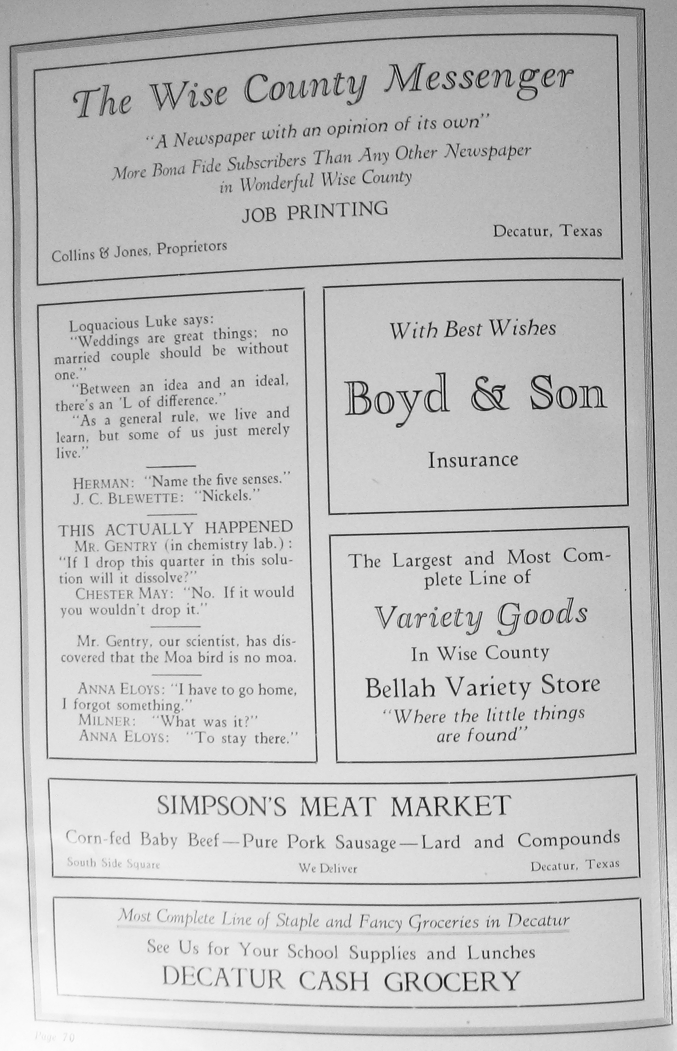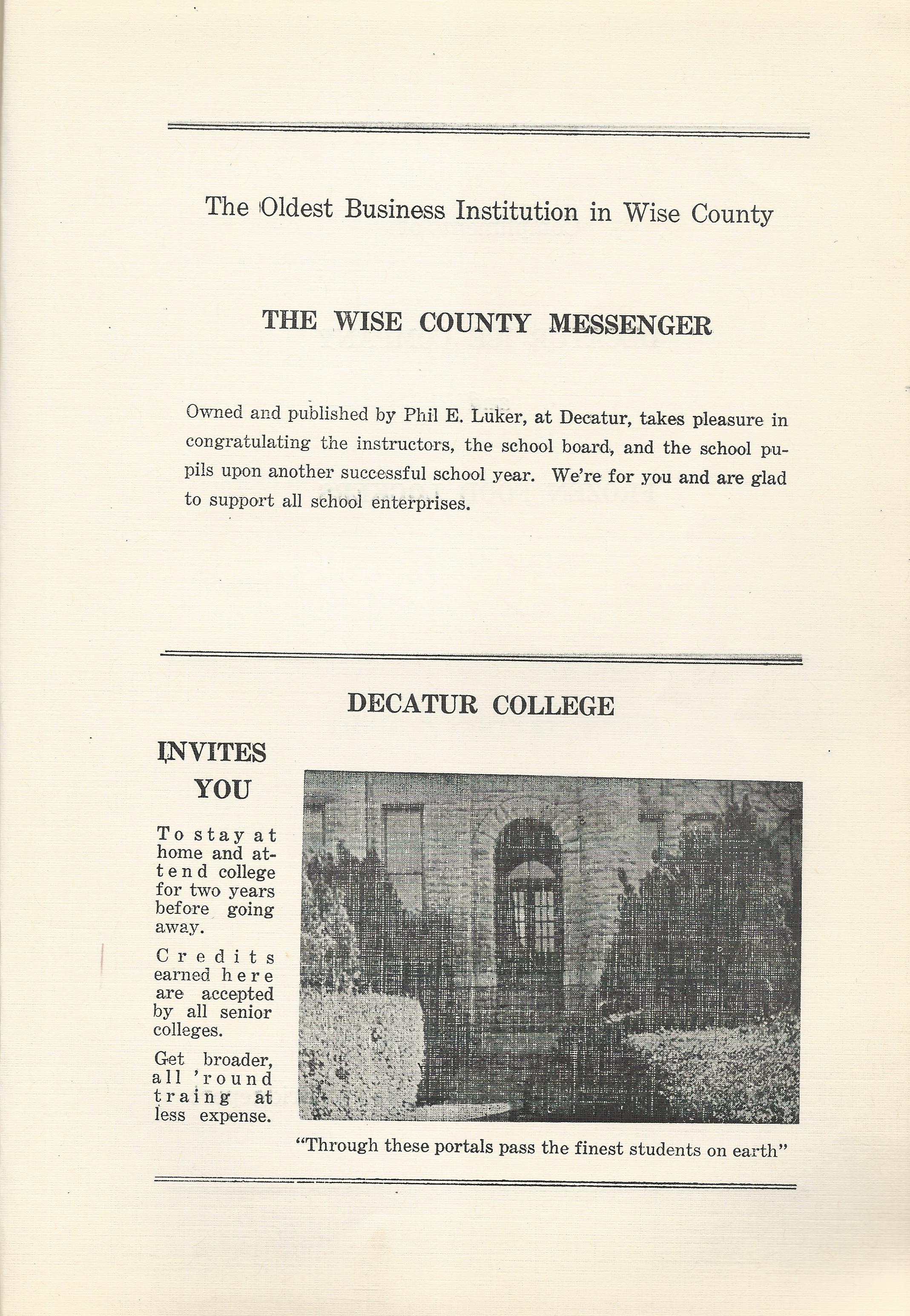 Decatur College / Picture 1946 DHS Advertisement