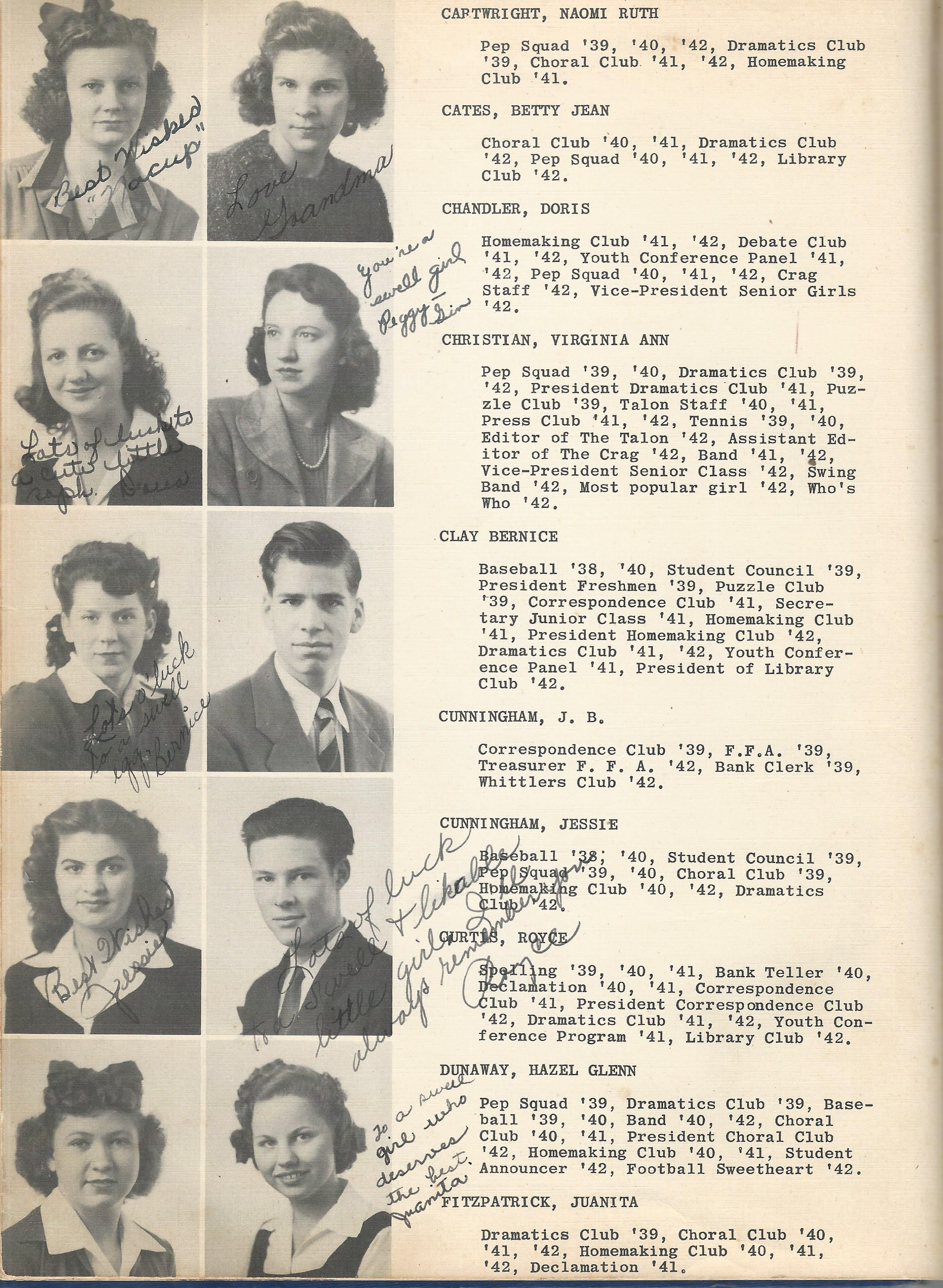 Kincaid, Emma Ruth 1942 DHS Senior Picture