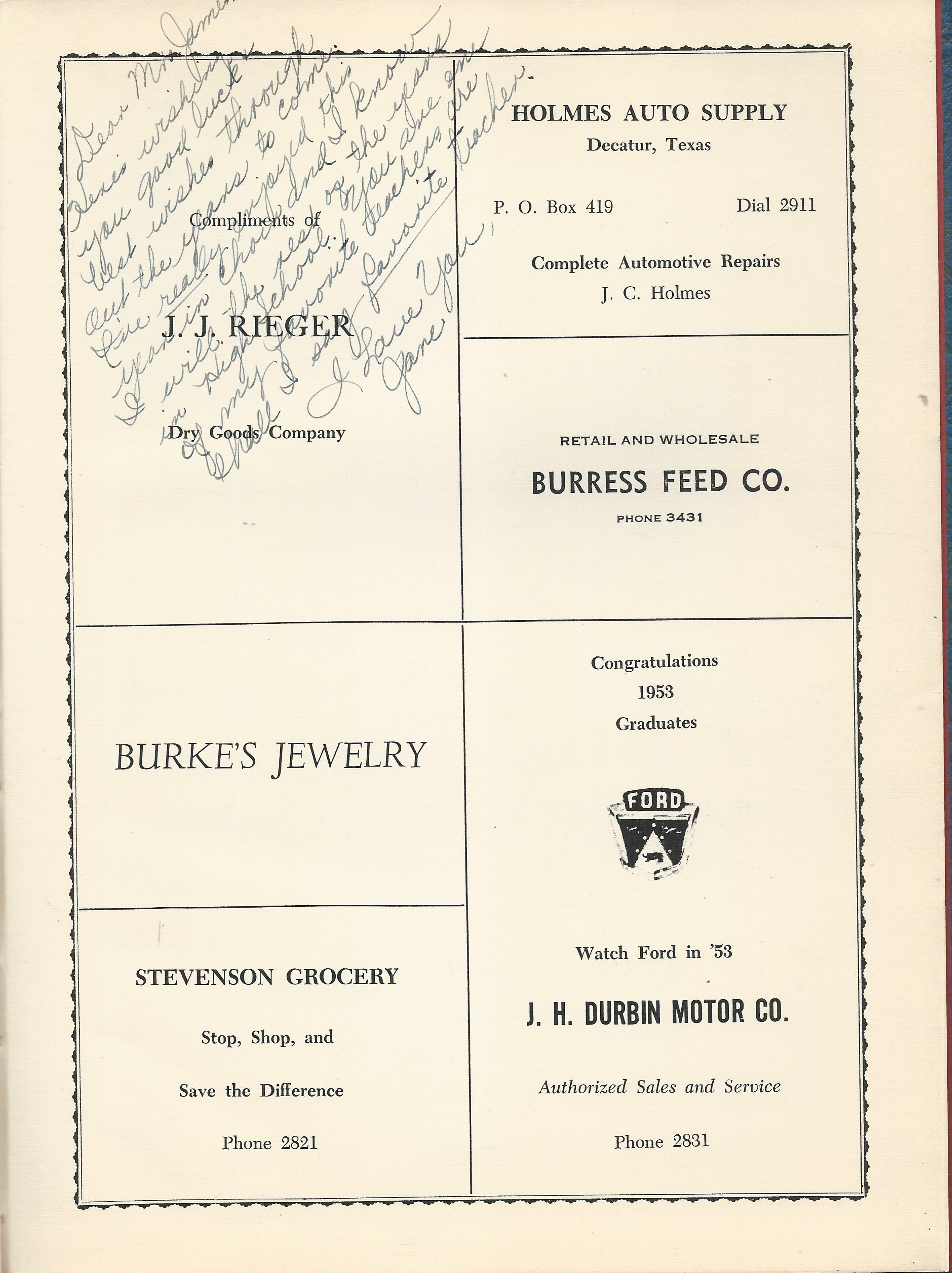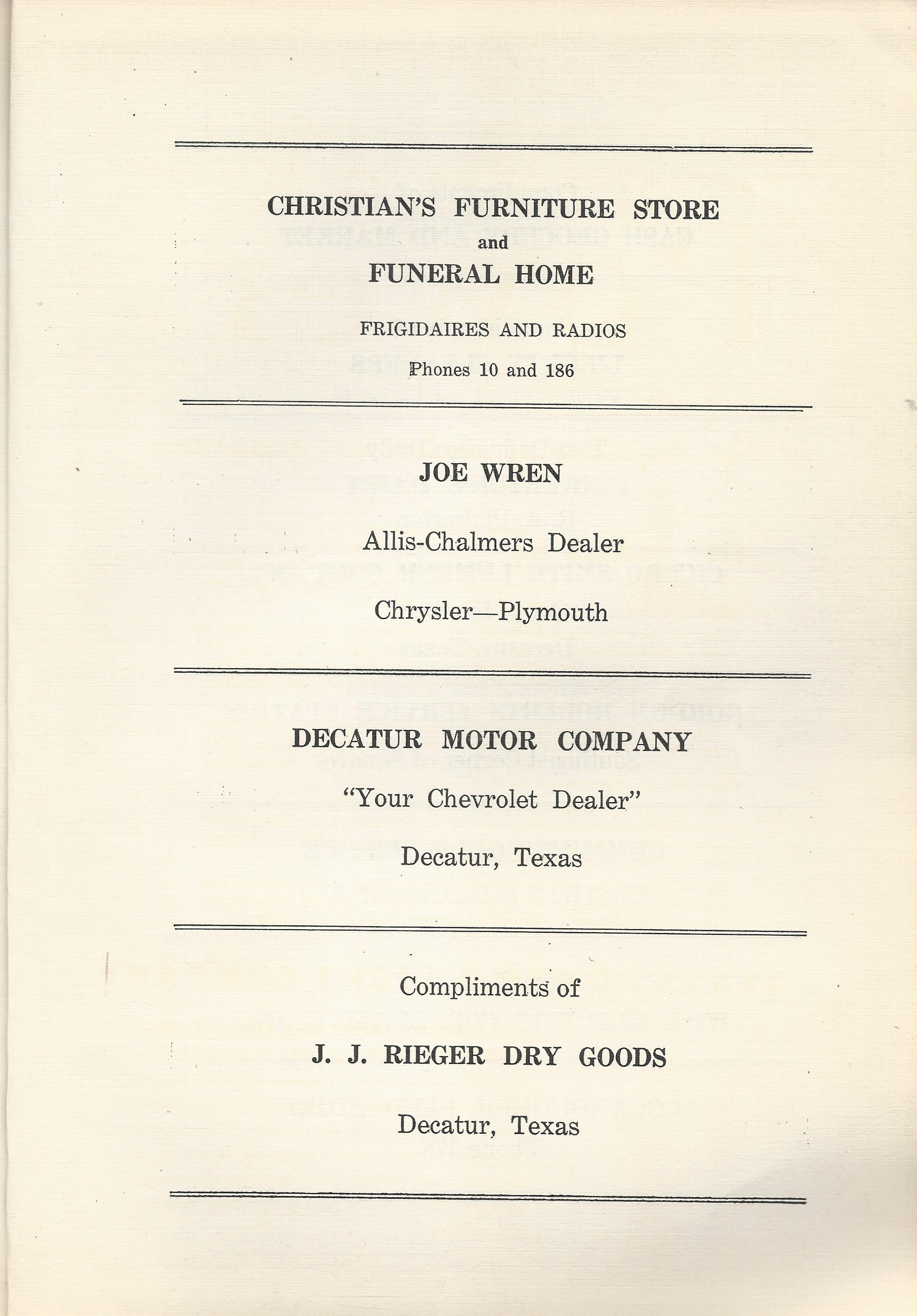 Decatur Implement Co 1954 DHS Advertisement