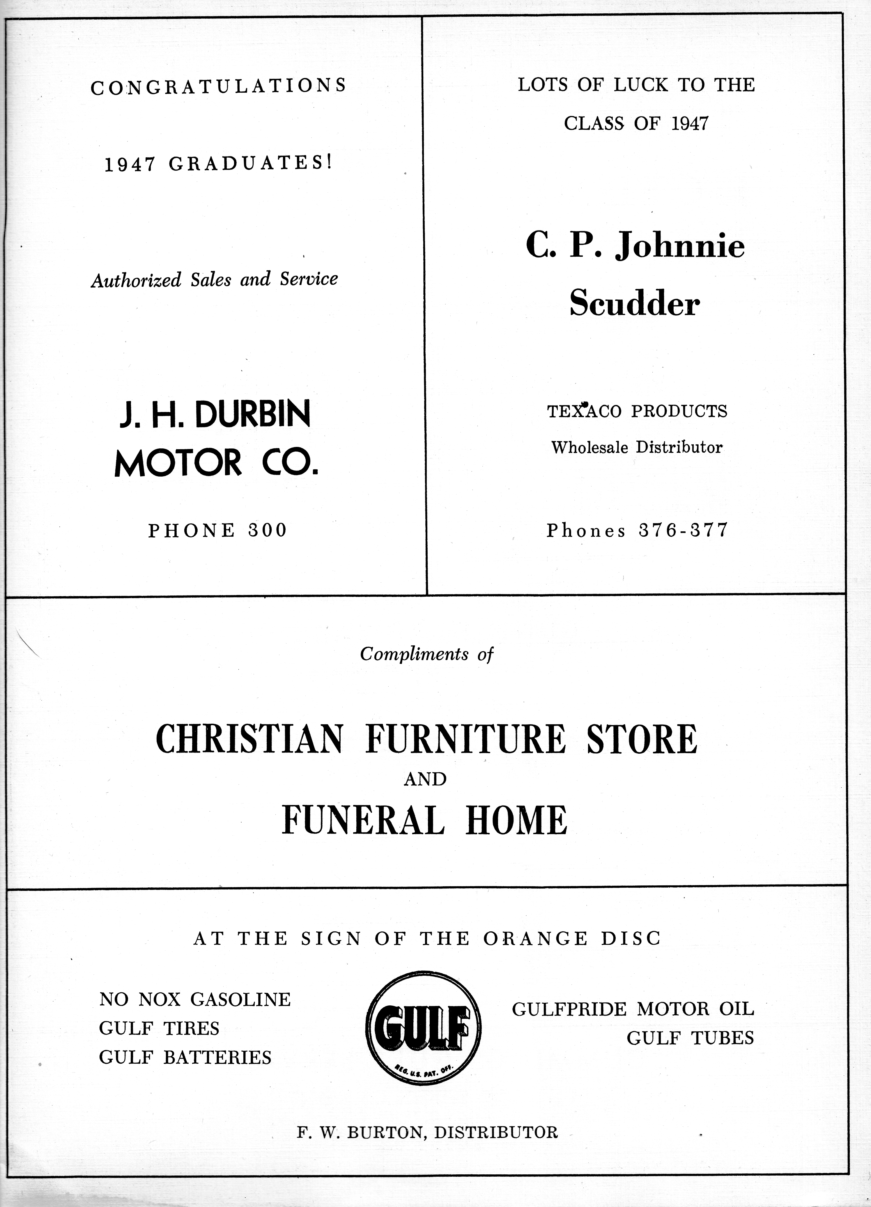 Decatur College 1947 DHS Advertisement