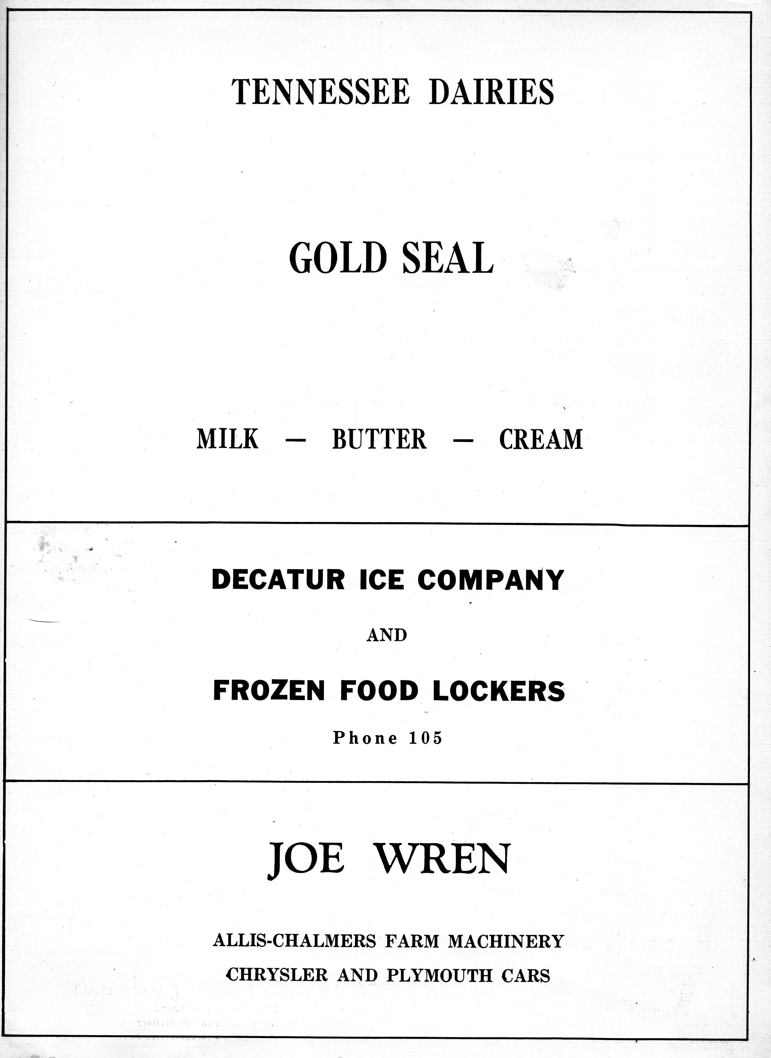 Decatur Ice Co 1948 DHS Advertisement