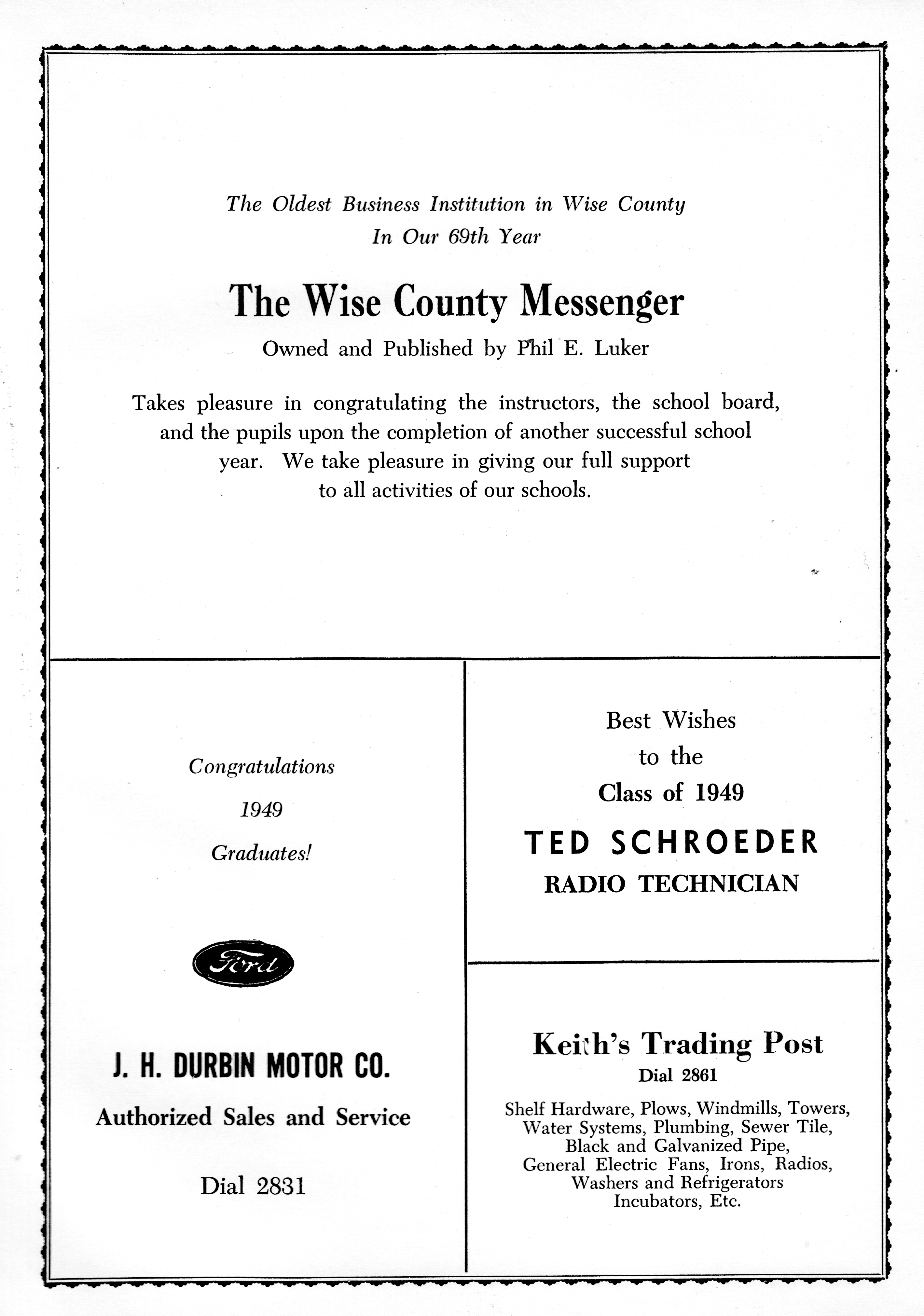 Keith's Trading Post 1949 DHS Advertisement
