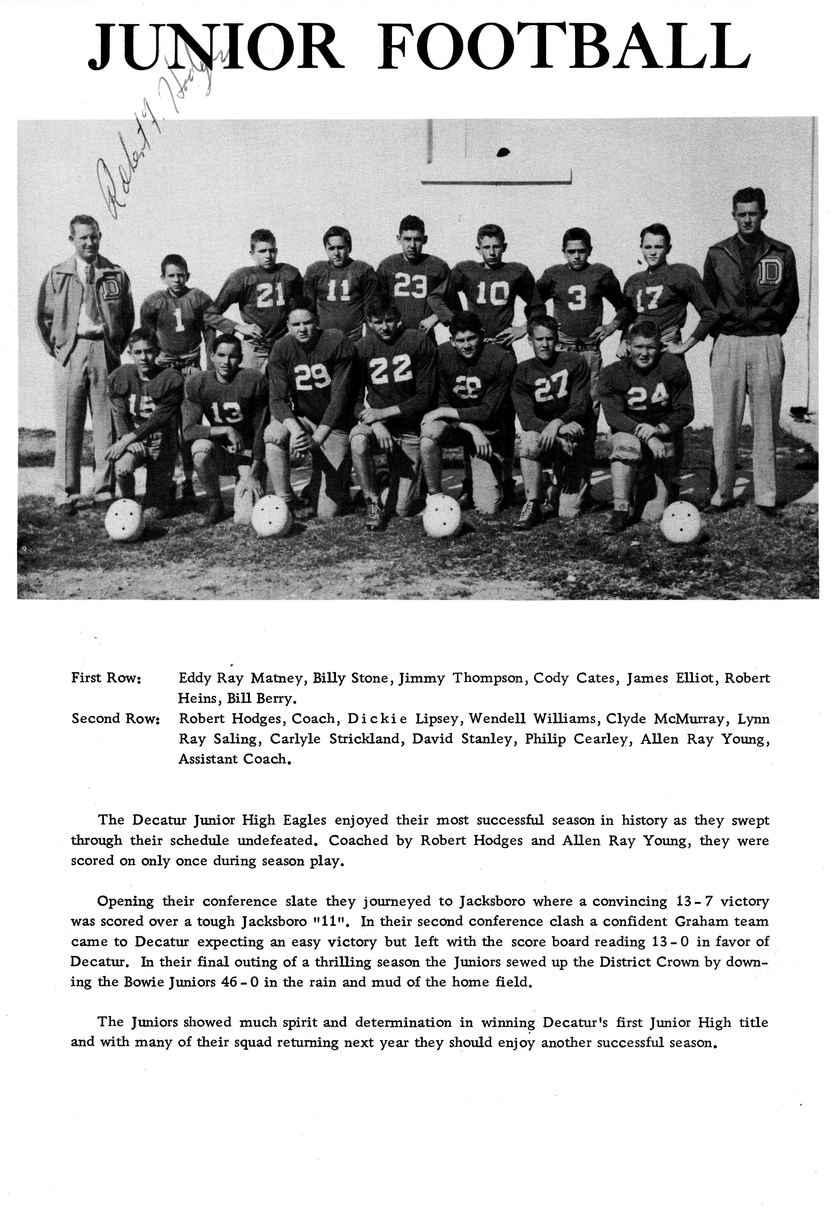 Decker 1947 DHS Football Picture