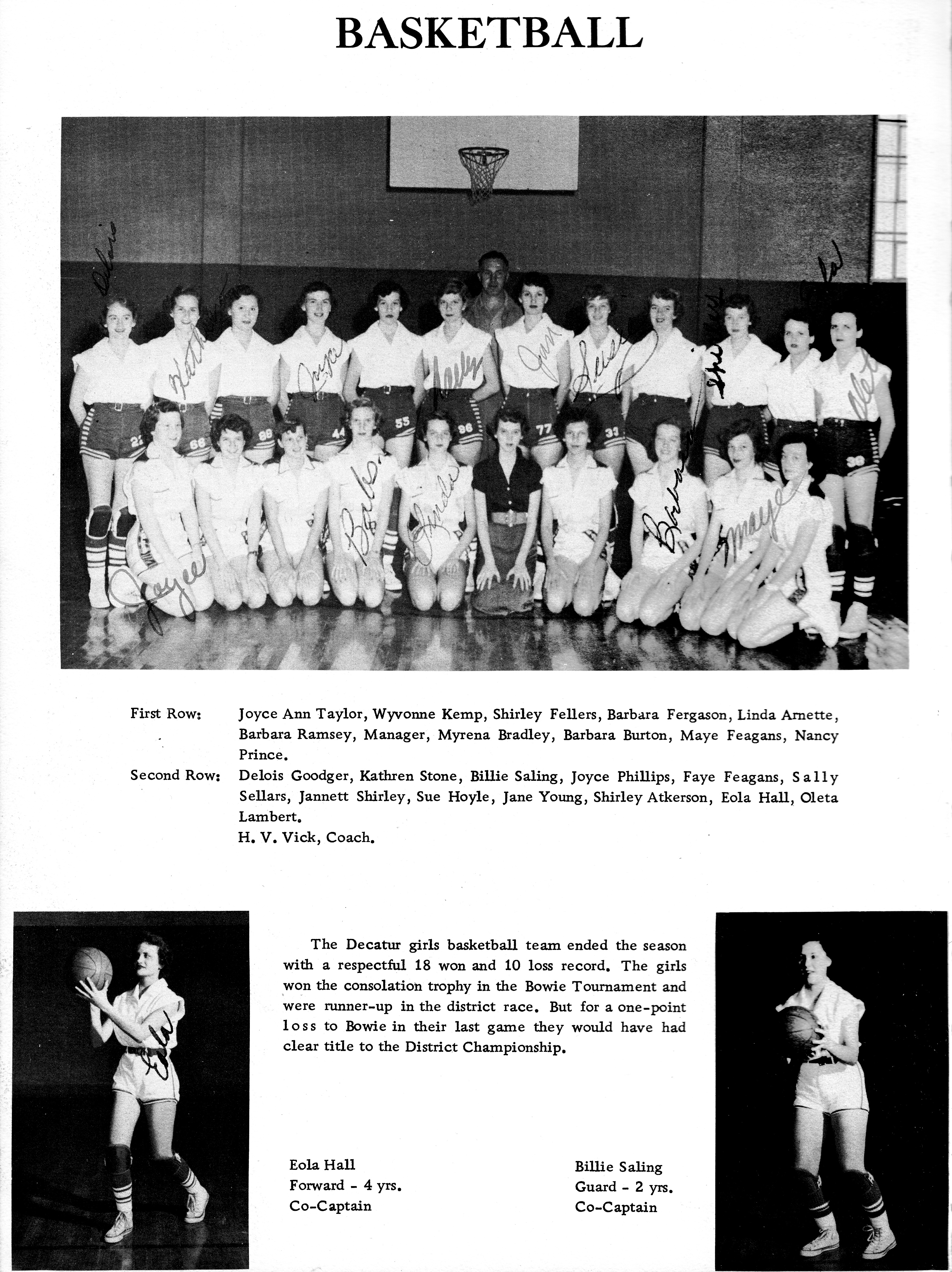 King, Bennie 1954 DHS Basketball Picture